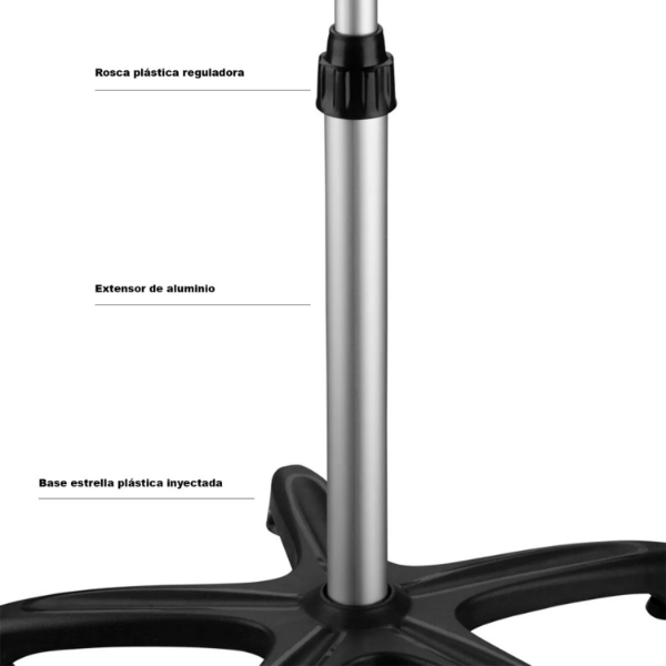 Base: Tiene una base estrella de nylon, amplia y robusta, que proporciona una gran estabilidad al producto. Portátil, es ideal para asistencia en la prestación de servicios en la casa de los clientes.