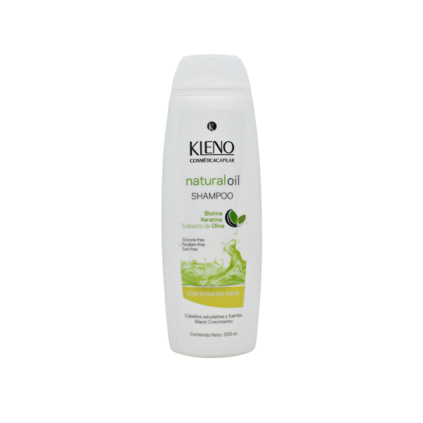 Shampoo Natural Oil KLENO, por su fórmula súper nutritiva, otorga un crecimiento más fuerte, evitando el quiebre y disminuyendo la caída. El cabello crece con más fuerza, alcanzando el largo deseado y recuperando su movimiento. La Biotina es una vitamina esencial que ayuda a generar proteínas y carbohidratos, protegiendo la superficie del cabello y evitando así la formación de puntas florecidas, brindándole más fortaleza y un crecimiento más rápido. Cabellos sanos, largos y fuertes. No contiene siliconas, sal ni parabenos.